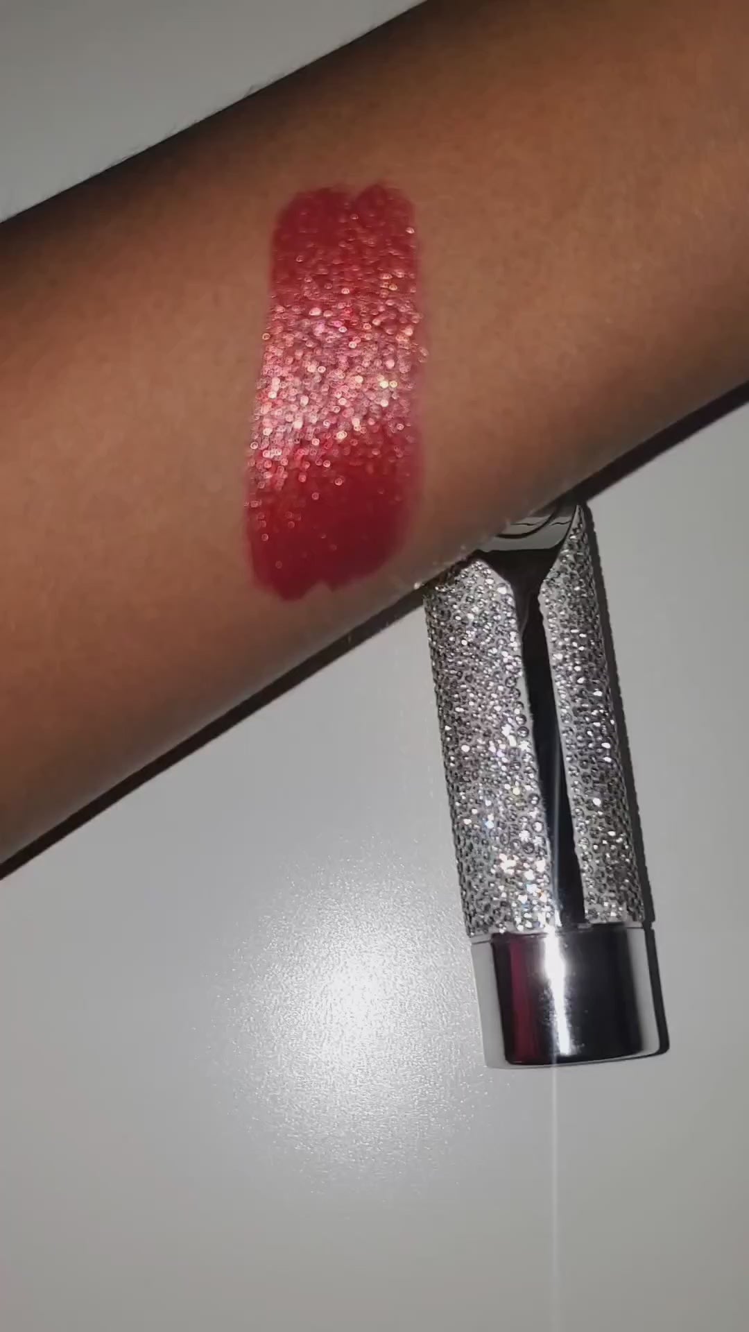 WHAT IS IT: A stunning red featuring dazzling gold glitter flecks, this luxurious lipstick provides bold, captivating color in a single application. Achieve your desired effect with its buildable hue, contained in a glitzy bedazzled tube.